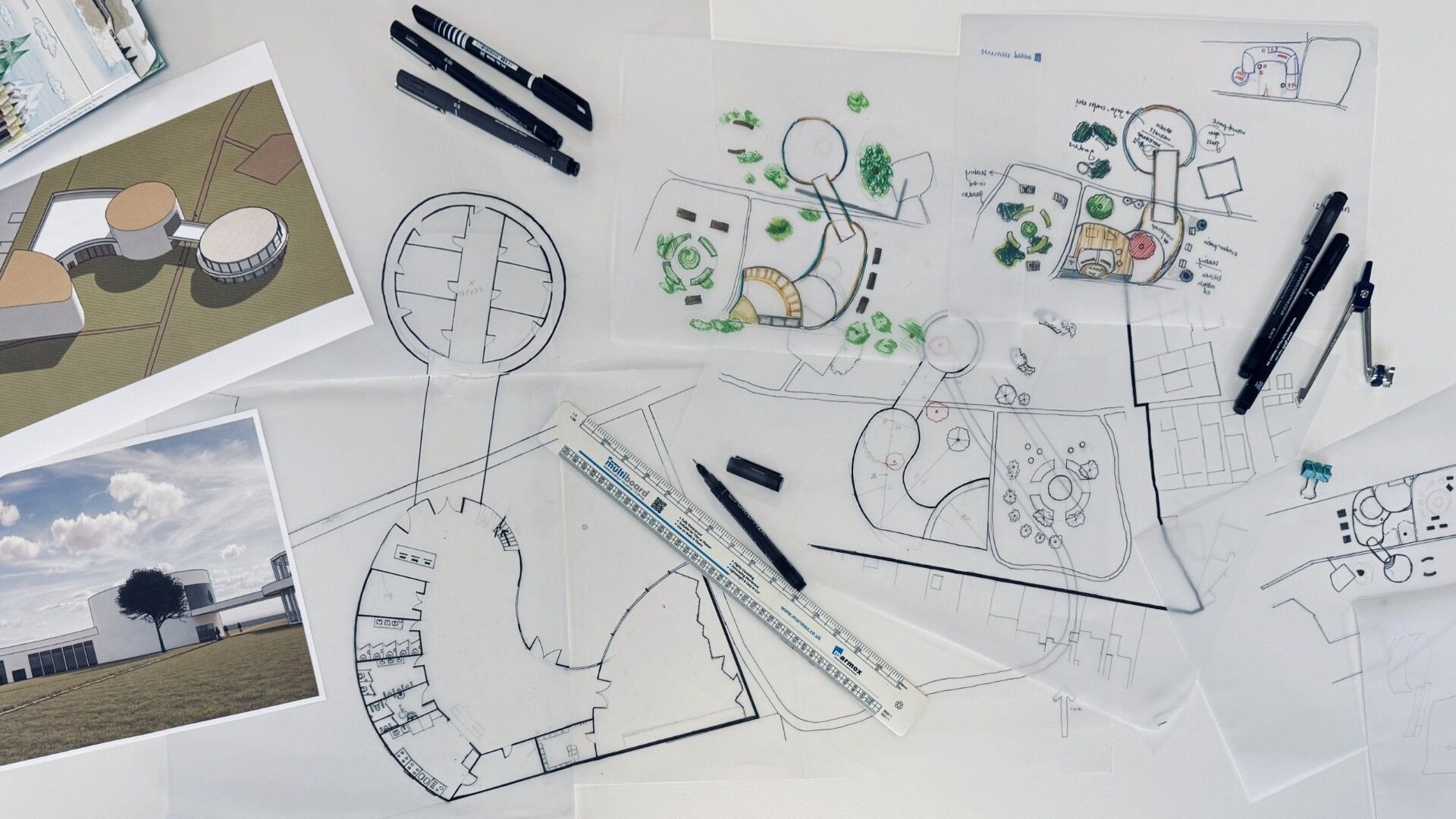 This summer, our team has had the pleasure of supporting a group of aspiring architecture students as they begin their journey into the field. As part of their learning experience, they were challenged to design a community centre for a local recreation ground — a space aimed at bringing together both younger and older generations through shared family activities such as indoor climbing and a community kitchen.